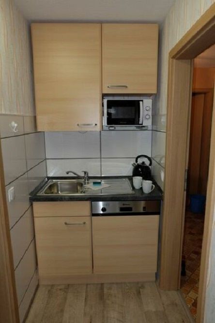 • Küche: Geschirrspüler, Kühlschrank mit Gefrierfach, Ceran- Kochfeld, Backofen, Mikrowelle, Kaffeemaschine, Wasserkocher, Toaster, Eierkocher, Handmixer, Fernseher, Radio, Geschirrhandtücher