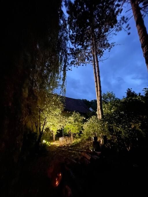 Das Haus ist sowohl von der Straßenseite, als auch durch die Hofseite zugänglich. Parkplätze findet man auf dem komplett hundesicher eingefriedeten, grün eingewachsenen Hofgrundstück.