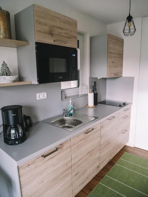 • Sehr gut ausgestattete Küche mit Spülmaschine, Herd, Kaffeemaschine, Mikrowelle, Toaster uvm.