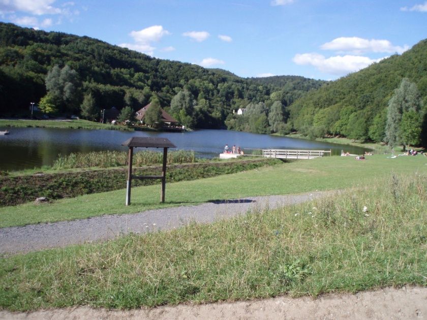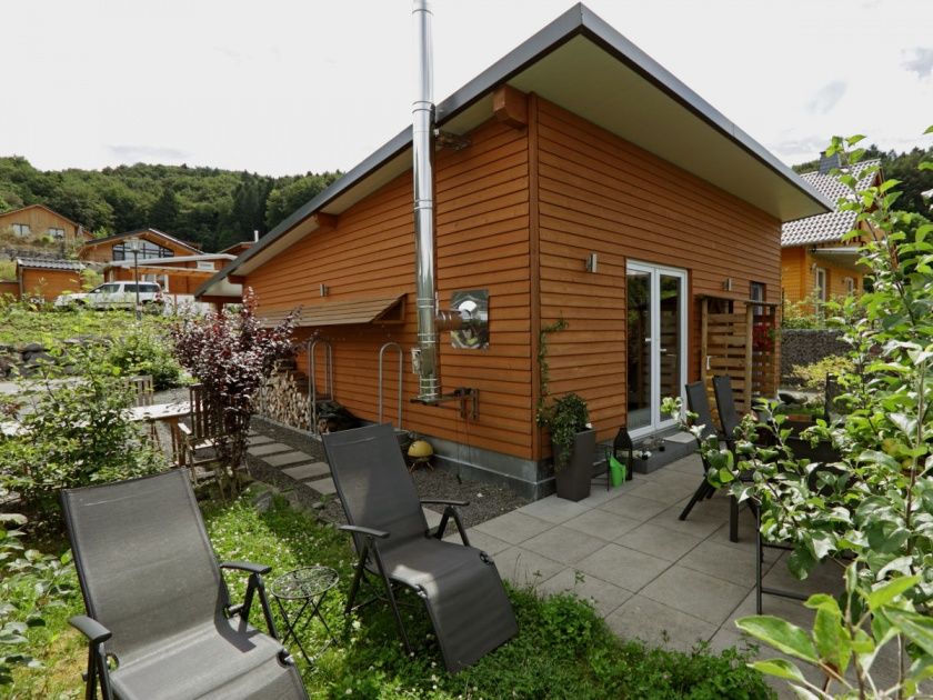 Unser aus Holz gebautes Ferienhaus Heides Hütte 3 liegt unmittelbar am Riedener Waldsee mit Blick auf den See.