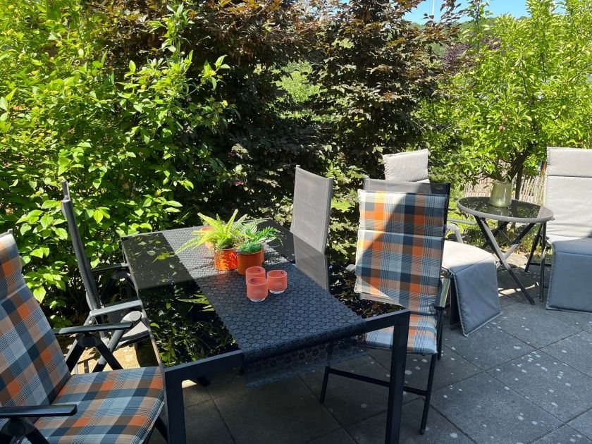 • Auf 2 Terrassen und der Liegewiese befinden sich verschiedene Sitz/Liegemöglichkeiten.