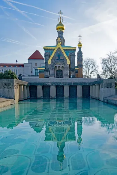 Fällt Besucher*innen direkt ins Auge: Die prächtige Russische Kapelle in Darmstadt.