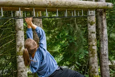 Wer über den Startturm in die acht Parcours mit unterschiedlichen Schwierigkeitsstufen einsteigt, kann auf einer Gesamt-Kletterstrecke von 1,5 km an ca. 80 Kletteraufgaben seine ganz persönlichen Grenzen austesten. Die Übungshöhen variieren hier zwischen drei und neun Metern. Zwei Eventelemente stehen für den besonderen Adrenalinkick bereit: ein fast 16 Meter hoher „Base-Jump“ und ein „Giant-Swing“.
