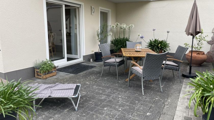 - Im Wohnzimmer gibt es einen Flachbild-Sat-TV mit Ledersofa und einer Schlafcouch (160 x 200) sowie den direkten Zugang zur Terrasse, welche an warmen Tagen zum Sonnen und Entspannen genutzt werden kann, runden das Bild ab.