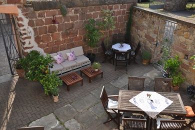 Erbaut wurde sie um 1200 herum vom Geschlecht der Staufer. 1689 wurde sie im Pfälzischen Erbfolgekrieg durch französische Truppen vollständig und endgültig zerstört. Im 18. Jahrhundert entstand auf den Trümmern der Unterburg ein herrschaftliches Wohnhaus. Erkunden Sie den Torbau mit fünfgeschossigen Treppenturm, Teile der Ringmauer und zwei Renaissanceportale. Dort befindet sich jetzt ein Restaurant mit tollem Panoramablick über die Rheinebene. Schlossbesitzer ist heute der Unternehmer Klaus Erath.