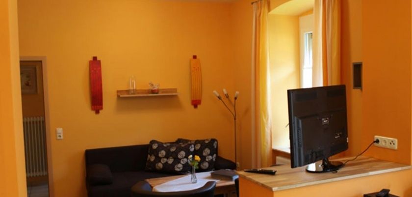 Unser Apartment befindet sich im Erdgeschoss. Ein großes Bad, eine komplett eingerichtete kleine Küchenzeile und eine gemütliche Sitzecke mit TV stehen zur Verfügung. Gerne können Sie sich hier selbst versorgen oder unser reichhaltiges Frühstücksbuffet genießen.