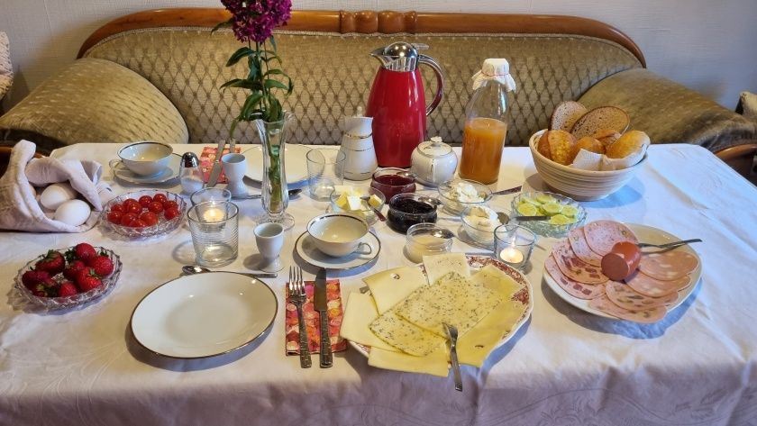 - Auf Anfrage bieten wir ein reichhaltiges Bauernfrühstück oder einen Brötchenlieferservice an (am Wochenende, beides gegen Aufpreis).