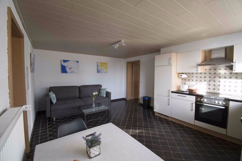 In der gesamten Wohnung sind Fliesenfußböden aus belgischem Blaustein verlegt, und bis auf eine kleine Stufe von 7 cm Höhe ist die Wohnung vollständig barrierefrei. Sie erhalten von uns selbstverständlich Bettwäsche und Handtücher kostenlos zur Verfügung gestellt. Haustiere sind bei uns nicht erlaubt. Das hat nichts damit zu tun, dass wir Tiere nicht mögen, sondern dass wir selbst welche haben.