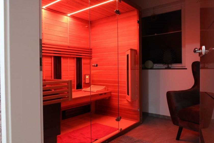 Eine Oase der Ruhe bietet unsere Kombisauna aus Zedernholz. Mit digitaler Steuerung können Sie sich ganz individuell die Temperatur genau nach Ihren Vorlieben einstellen. Ob klassische Schwitzpartie mit Aufguss oder Infrarotkabine – die unnachahmlich wohltuende Wirkung eines Saunagangs ist ein unverzichtbarer Teil Ihres Wellness-Urlaubs in unserem Silberglanz. Runterkommen, Entspannen, Genießen – hier erleben Sie den Genuss eines Wellnessurlaubs in ganz privater Umgebung.