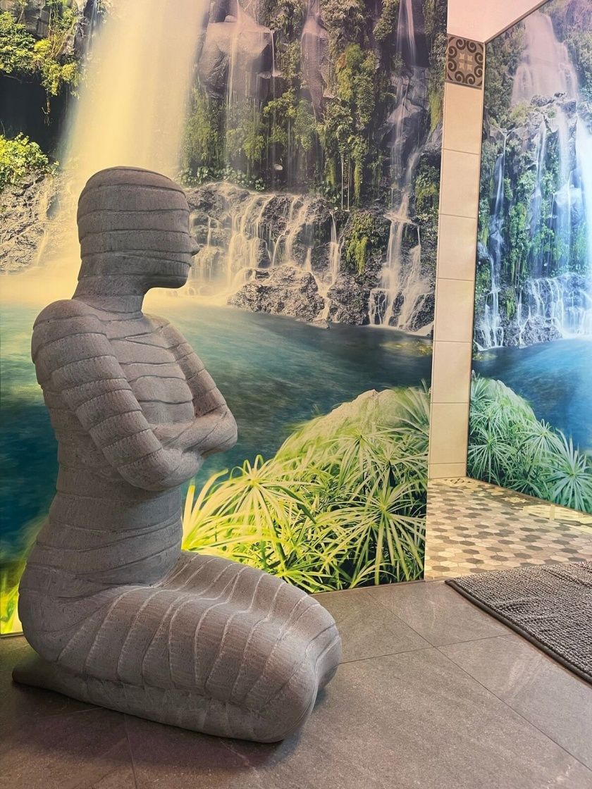 - Nach einem Saunagang ist eine entspannende Dusche das Tüpfelchen auf dem i. In unserer riesengroßen Raindance-Dusche kann man sich – nicht nur alleine – dem erfrischenden Nass hingeben. Fühlen Sie sich wie in einem warmen Sommerregen und spüren Sie das belebende Gefühl einer frischen Dusche in purem Luxus.