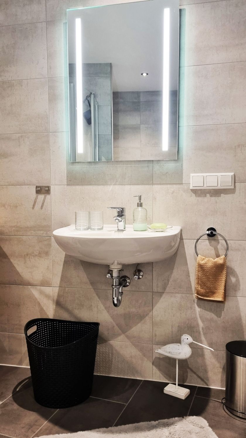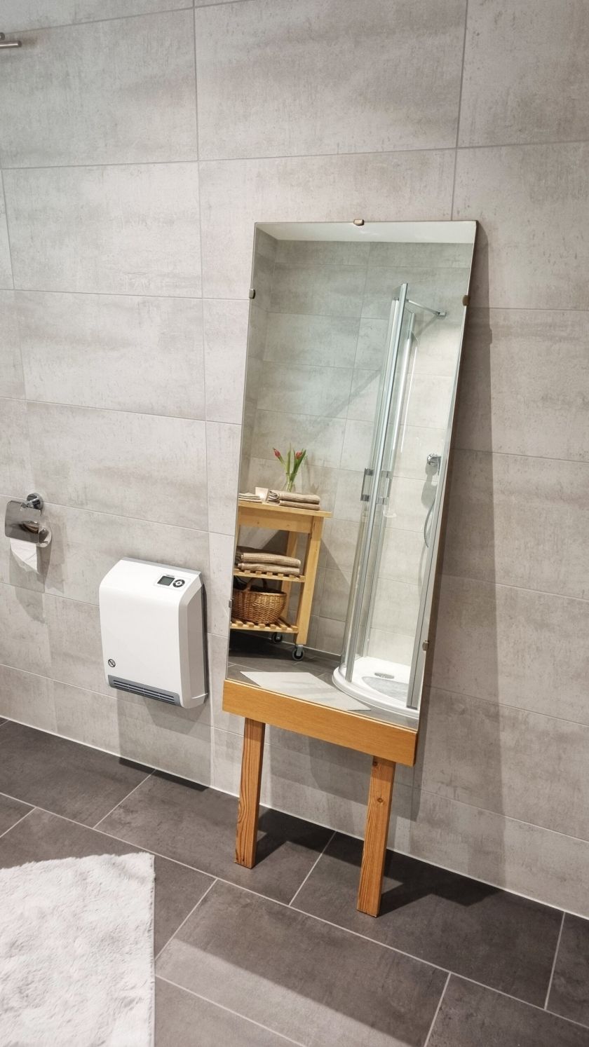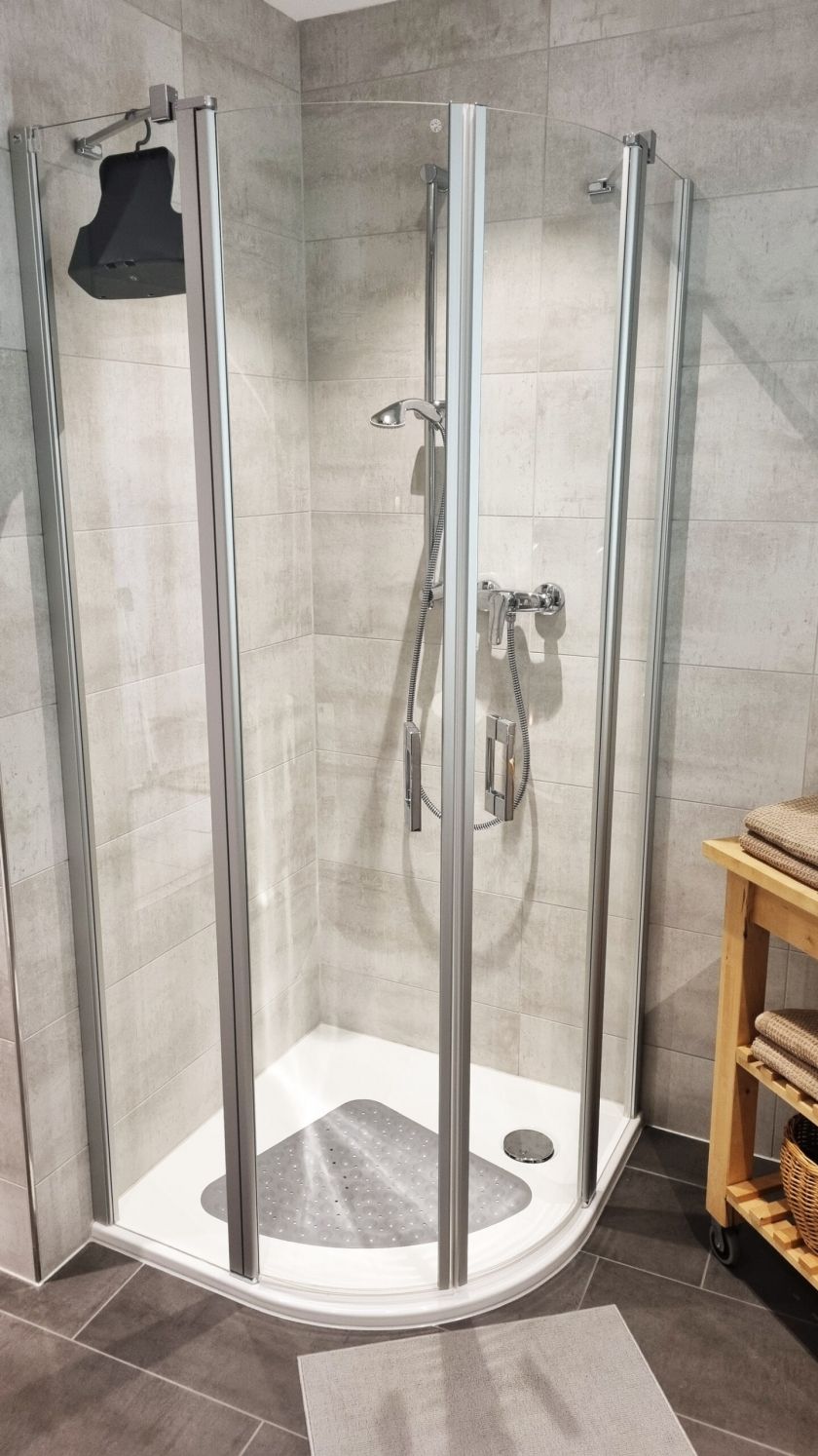 • Großes, hochwertiges Badezimmer mit Dusche und WC, Föhn und Waschmaschine
