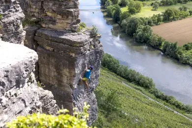 - Hier finden Sie 130 Kletterrouten vom 3. bis zum 9. Grad.