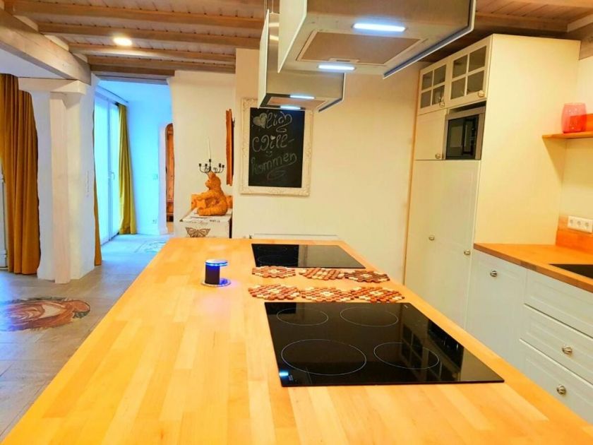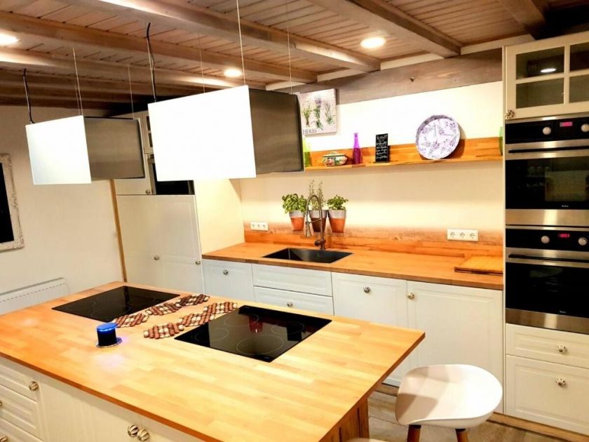 Das neu restaurierte Bauernhaus ist sehr gut für Gruppen und Familien mit Generationen geeignet. Sie können innen und außen mit bis zu 18 Personen an einem Tisch zusammen sitzen. Hinter dem Cottage befindet sich die große Terrasse mit Grillkamin. Der Hof kann mit dem Tor geschlossen werden.