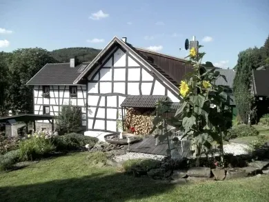 Unser Haus ist aus dem Jahre 1905. Wir haben es 1978 gekauft. 2023 haben wir die Einliegerwohnung als Ferienwohnung umgebaut. Die Wohnung liegt auf der Rückseite des Hauses mit großer Terrasse und Waldblick.