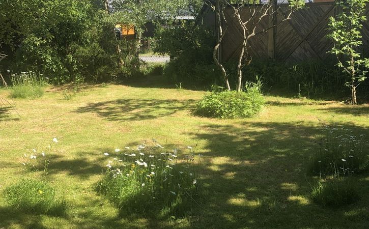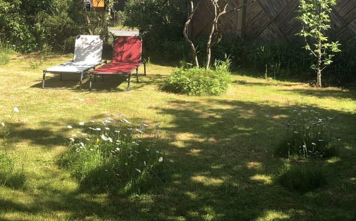 Im Garten des 400 m² großen Grundstückes befindet sich ein Carport für die Unterstellungen des Autos oder Fahrräder und eine Terrasse mit Markise. Zusätzlich gibt es einen PKW-Stellplatz. Der Garten ist komplett eingezäunt mit einem 80 cm hohen Zaun.