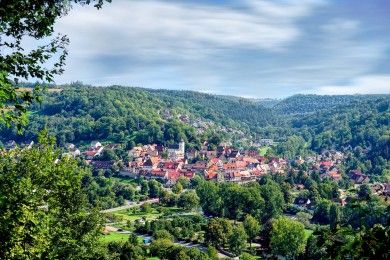 • Von der Westseite aus hat man einen Panoramablick auf Schloss, Stadt und zu den Ellwanger Bergen bis hin zur Jakobuskirche auf dem Hohenberg.