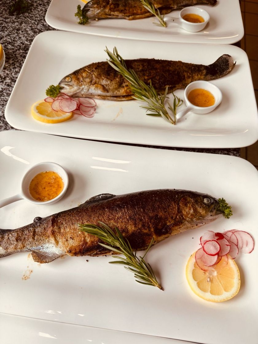 Bei unserem Motto im Restaurant heißt es "Frischer als bei uns gehts nicht". Bei uns kommt die Forelle immer frisch auf den Teller oder in den Räucherofen.