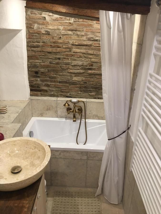 - Zudem ein WC und ein Schlafzimmer mit französischen Doppelbett mit eigenem Zugang zum Hinterhof.