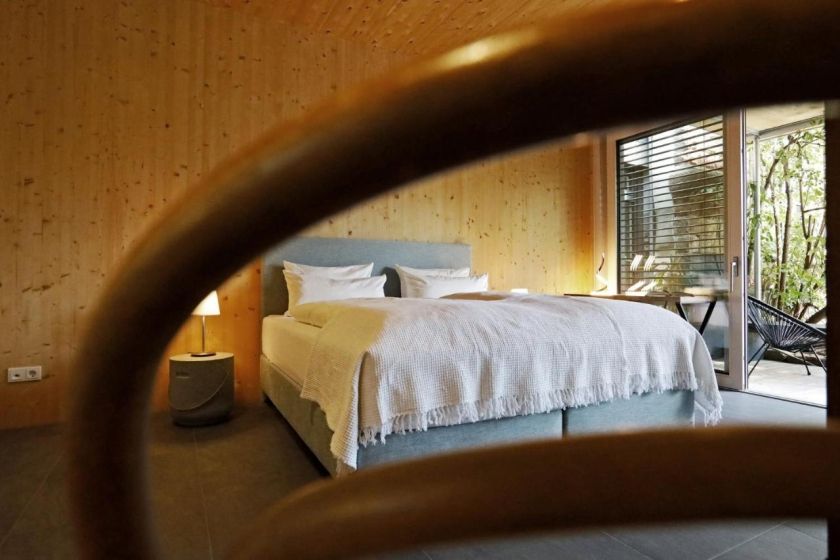 • Nach ausgedehnten Wanderungen im Pfälzer Wald finden unsere Gäste in den naturbelassenen Holzinnenräumen eine wohlige Atmosphäre.
