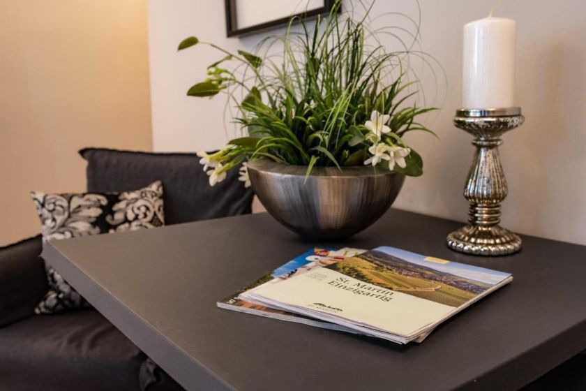In den von 2019-2021 renovierten, modernen und ganz individuellen und unterschiedlichen Zimmern im barocken Ambiente können Sie im Herzen St. Martins Ihr „Basislager“ aufschlagen. Dabei haben Sie die Möglichkeit innerhalb wenigen Augenschlägen unzählige Weingüter zu besuchen, in kleinen Boutiquen zu bummeln oder den dorfeigenen Landmetzger mit Ihrem Besuch zu erfreuen.