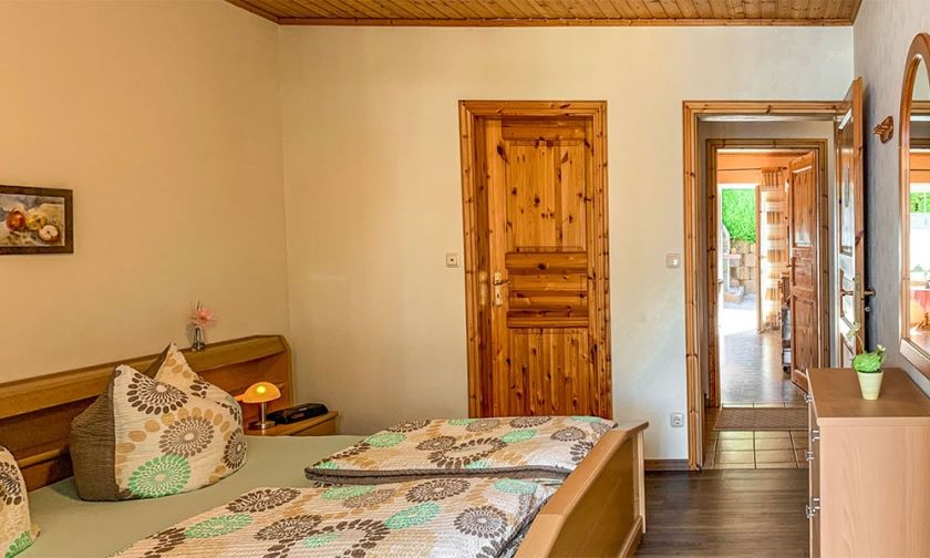 - Dreibettzimmer mit Zugang zum Garten