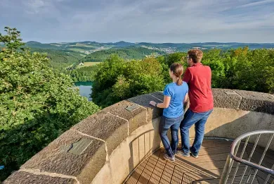 • Mit 43 Stufen führt der Weg hinauf zur Aussichtsplattform – ein lohnender Höhepunkt für einen Wander­ausflug in der Eifel.